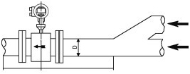 對(duì)于流量計(jì)前端有兩個(gè)支管進(jìn)總管時(shí),應(yīng)保證流量計(jì)的前直管段≥30D,后直管段≥3D