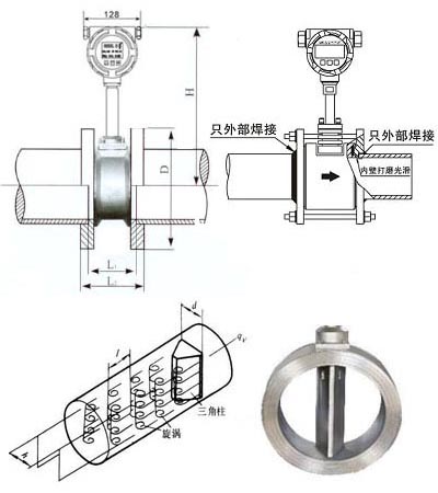 在實際應用中,往往大流量遠低于儀表的上限值,隨著負荷的變化,小流量又往往會低于儀表的下限值,儀表并非工作在它的佳工作段,為了解決這一問題,通常采用在測量處縮徑提高測量處的流速,并選用較小口徑的儀表以利于儀表的測量,但是這種變徑方式在變徑管與儀表間有長度為15D以上的直管段進行整流,使加工、安裝都不方便。的縱斷面形狀為圓弧的LGZ變徑整流器,具有整流、提高流速及改變流速分布多重作用,其結構尺寸小,僅為工藝管內徑的1/3,與渦街流量計作成一體,不僅不需要另外附加一段直管段,還可以降低對工藝管直管段的要求,安裝非常方便。