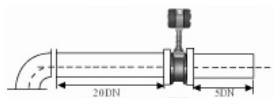 如果流量計的前端有兩個90°彎頭,要保證流量計的前直管段≥20D,后直管段≥5D