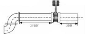 如果流量計的前端有兩個90°彎頭,要保證流量計的前直管段≥25D,后直管段≥5D