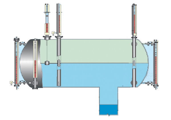 帶伴熱式磁浮子液位計根據浮力原理和磁性耦合作用原理工作的。當被測容器中的液位升降時,液位計主導管中的浮子也隨之升降,浮子內的磁鋼通過磁耦合傳遞到現場指示器,驅動紅白翻柱轉180°,當液位上升時,翻柱由白色轉為紅色,當液位下降時翻柱由紅色轉為白色,指示器的紅、白界位處為容器內介質液位的實際高度,從而實現液位的指示。
