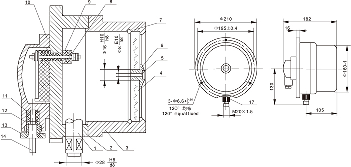 注: 防爆電接點壓力表的觀察窗的材質其抗沖擊強度不小于4J。觀察窗一旦損壞,則不準使用。